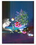 Jiny He's design for the Tea Garden Mix features a signature off-kilter assemblage of vessels and plants, with tipsy teacups alongside flowers and charming cats. Her global background, spanning China, Australia, and the US, deeply inspires her artwork.
